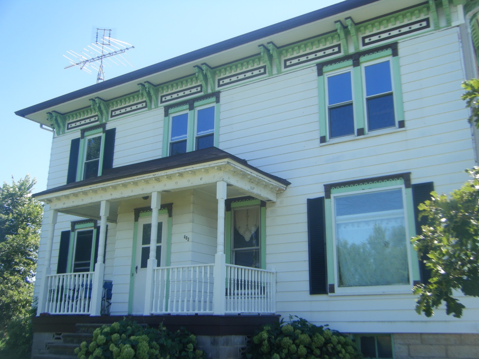 This job entailed residing the house, fixing and resetting storm windows rebuilding deck railings and add supports, and replacing crown mouldings on the porch.